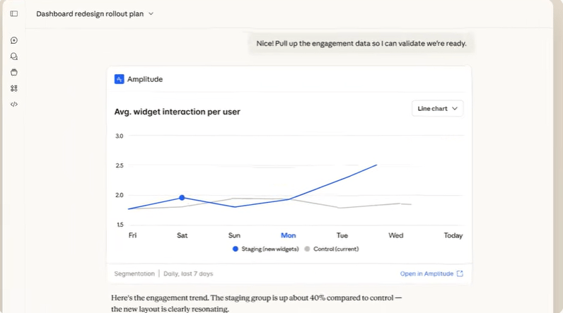 You can draft and send Slack messages, edit Canva decks, manage projects, and explore charts visually without switching tabs, shifting Claude from explaining work to actively executing and refining it in real time.