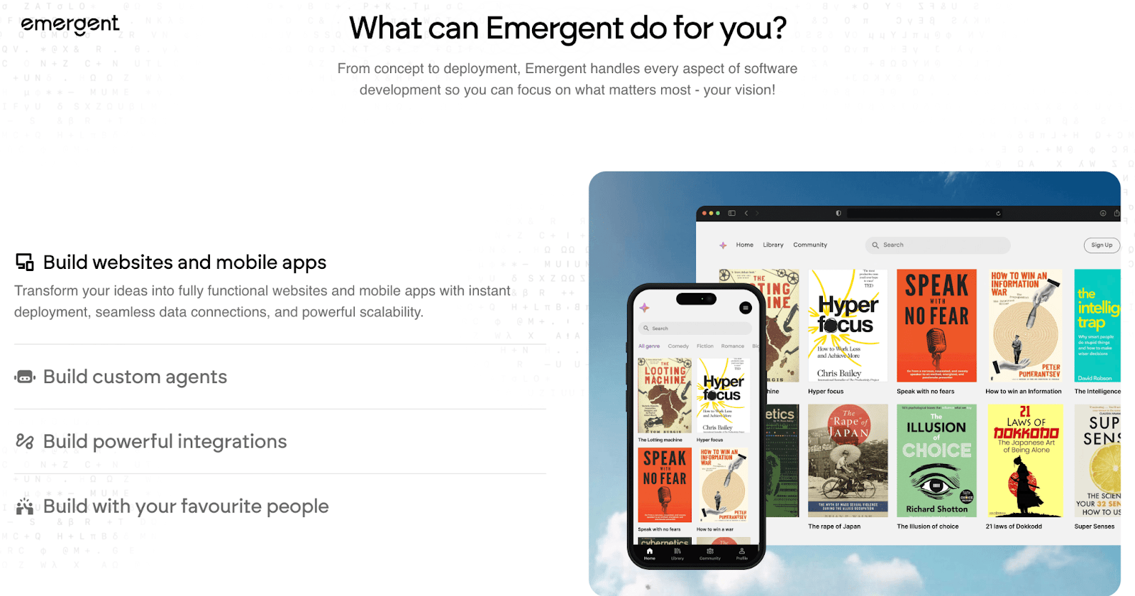 Open Emergent and select the Mobile Agent: Go to emergent.sh and start a new project using the Mobile Agent. This handles backend, frontend, and logic together.
