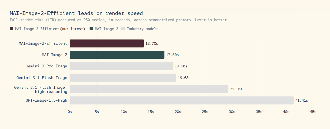 A Faster, Cheaper Image Model Is Live - Microsoft launched MAI-Image-2-Efficient on Foundry and MAI Playground, calling it its best text-to-image model yet and a production workhorse for businesses needing volume, speed, and tight cost control.