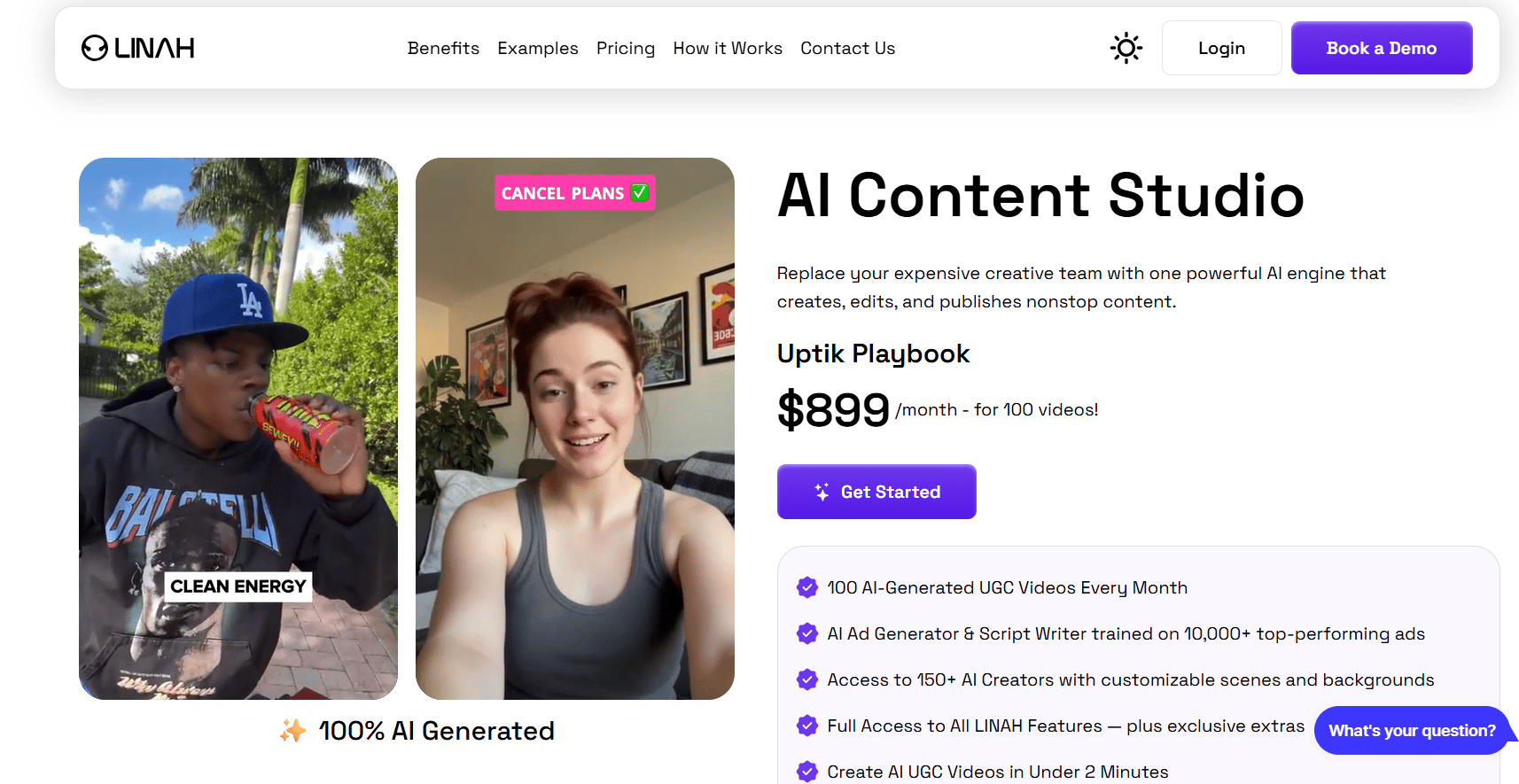 Linah’s Ad Factory is built to crank out UGC style ads fast, using a single product photo plus a script and creator pipeline.